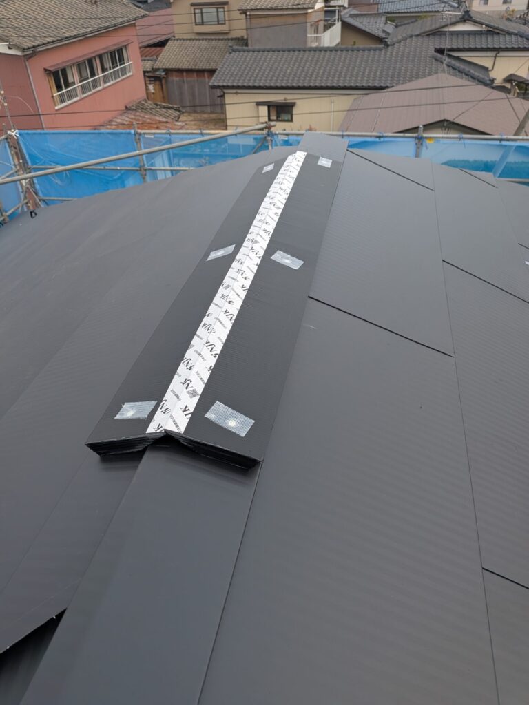 屋根に開口部を設け、リッチベンツ商品を取り付ける。この時、屋根立ち上げ返し〜ブチルテープ〜シーリング〜リッチベンツの順!