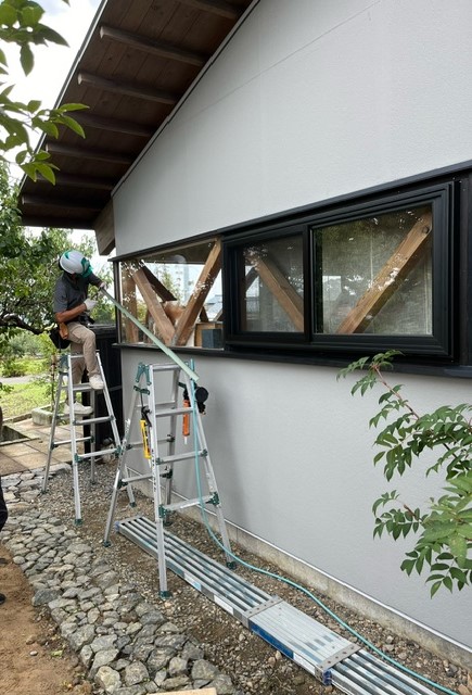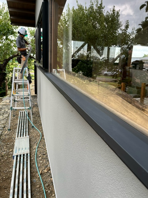 ソリッド 弥彦村現場です 窓枠板金取り付け工事(サッシ水切り工事)をさせて頂きました。