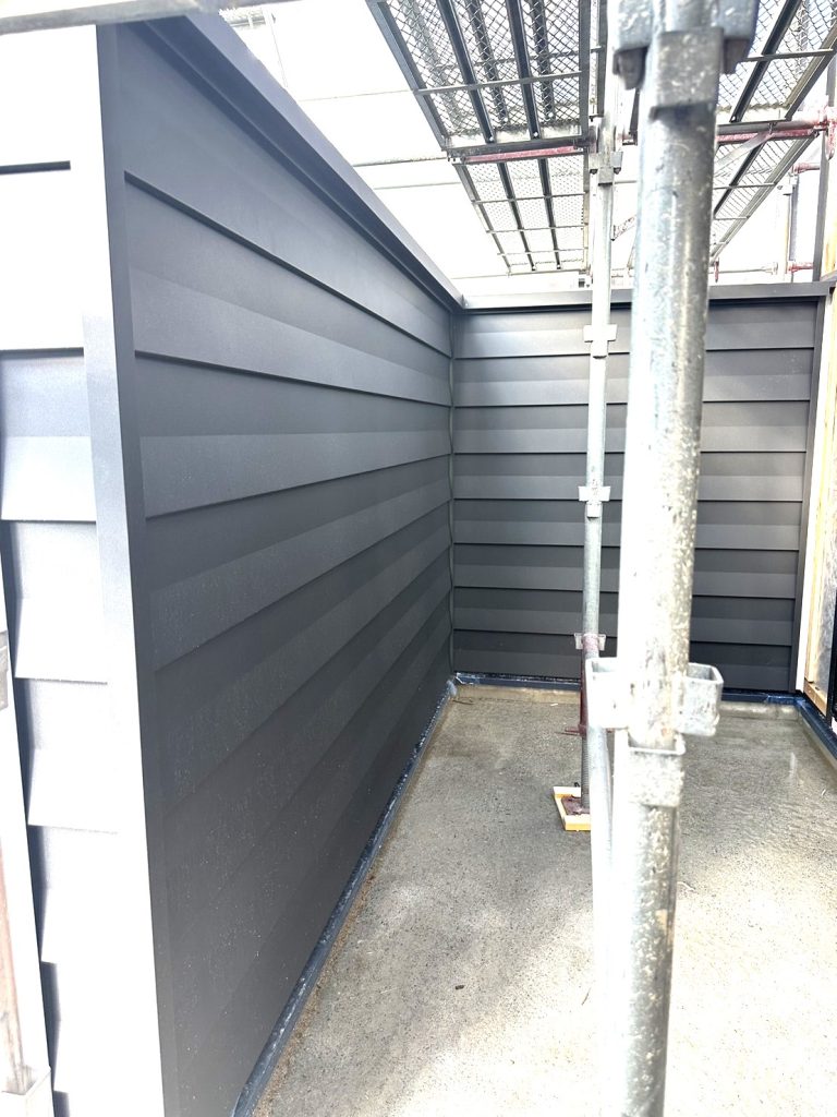 外壁材 エバールーフ (耐摩カラー№640Sネオブラック) 張っていってます