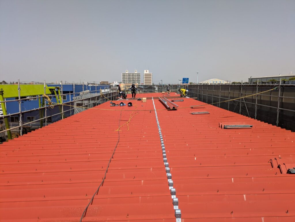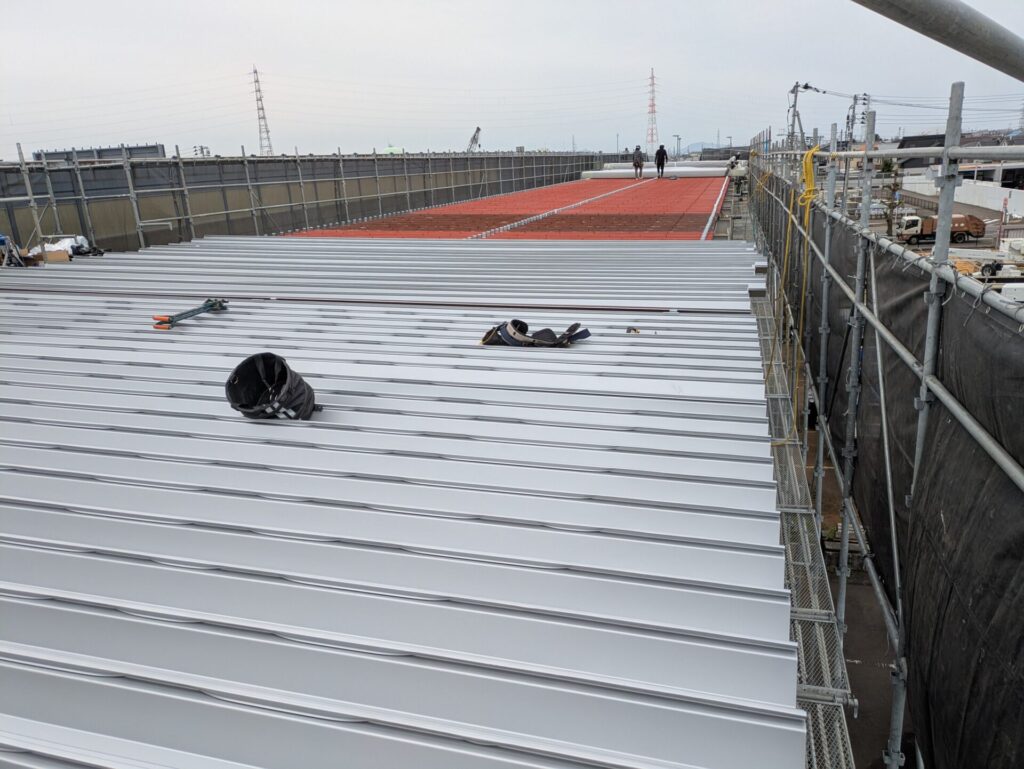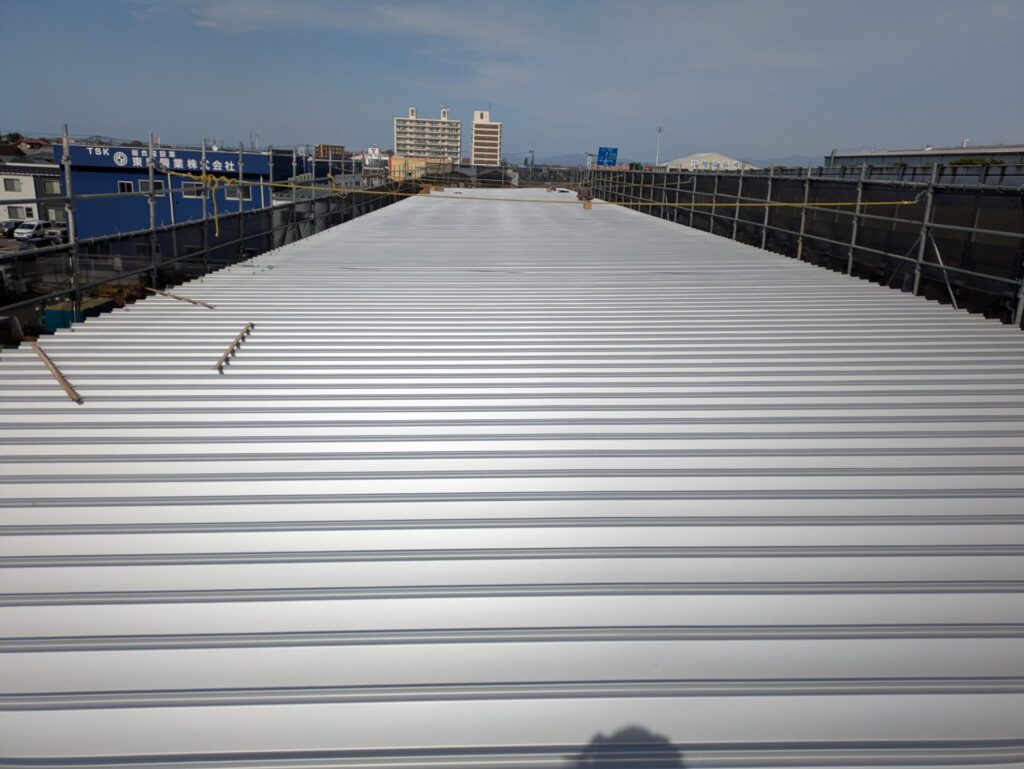 既存の折板屋根を活かし、セキノ興産SV-7(シルバー)でカバー工法を施工。