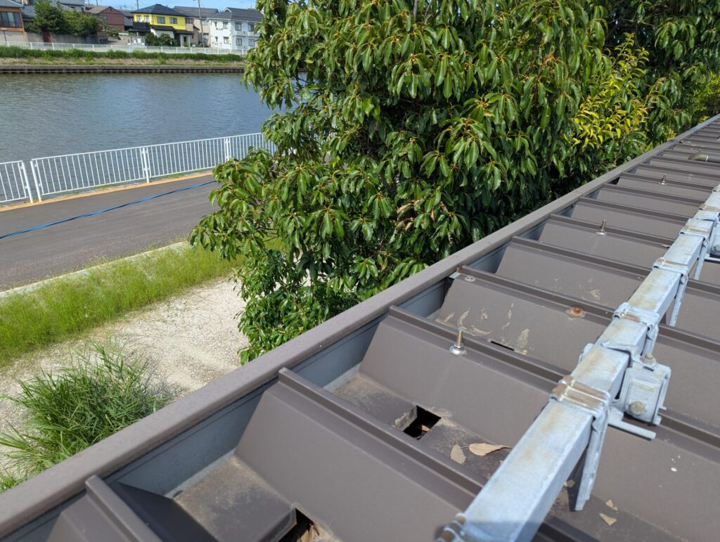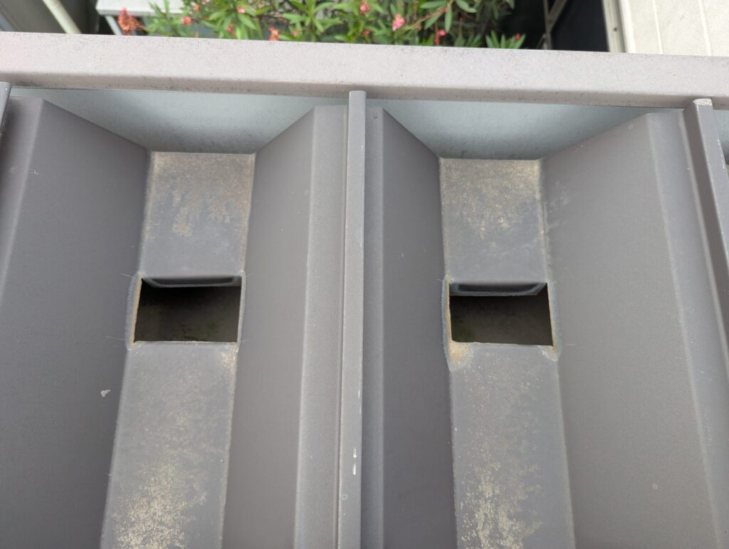 周りに屋根より高い木がいっぱい植えられていたので枯れ葉などがたくさん雨樋の中に溜まっていました。